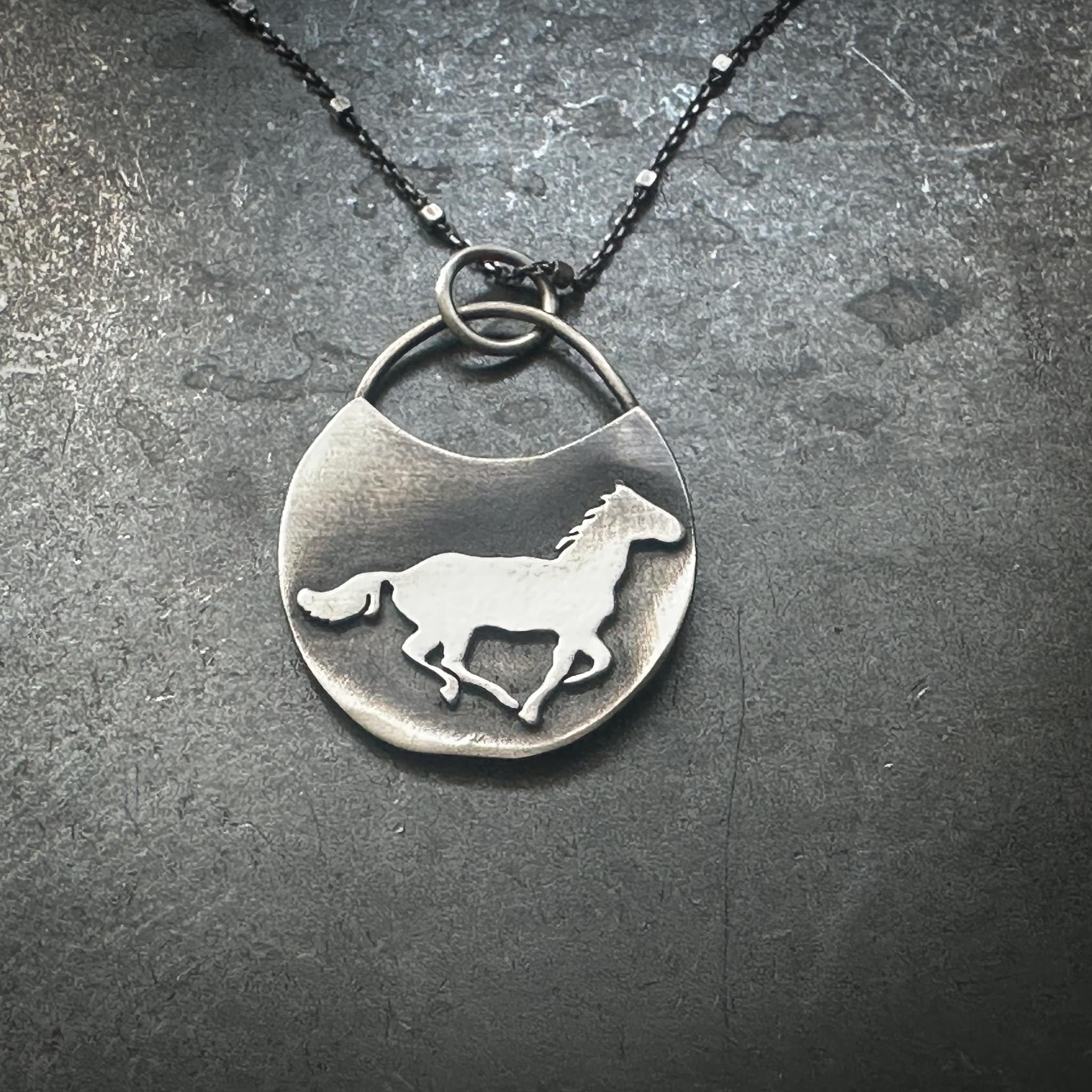 Sterling Silver Horse Talisman Necklace | Galloping Horse on Full Moon
