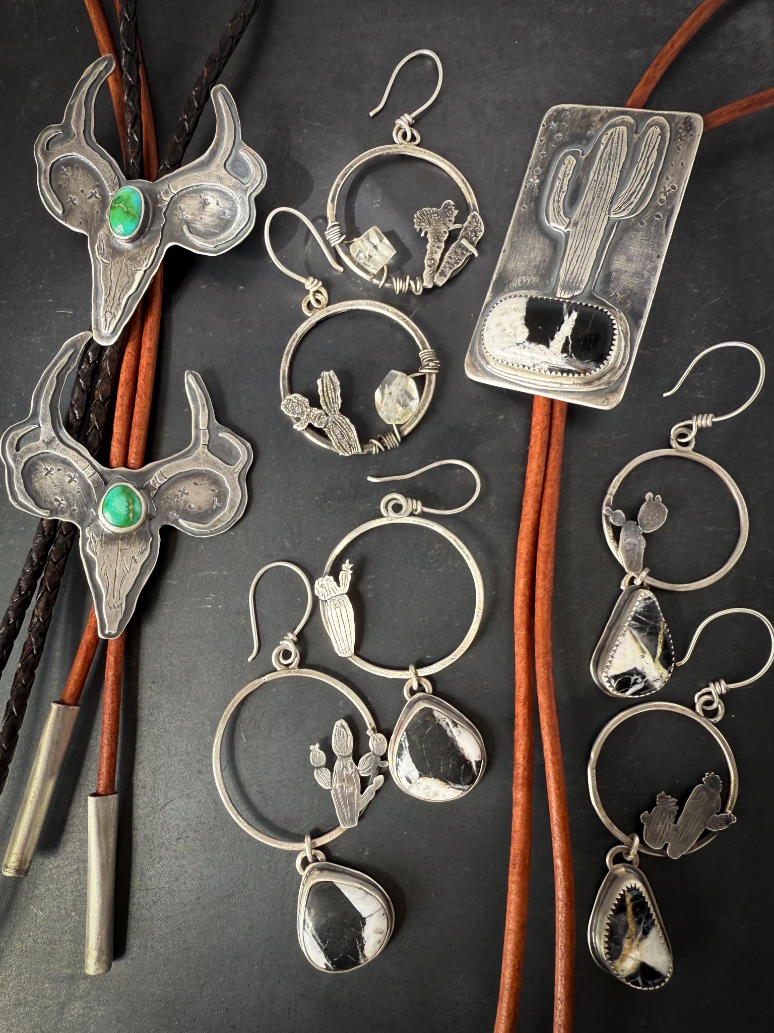 Bones, cactus, stone, and sky... talismans of the desert, forged in sterling silver