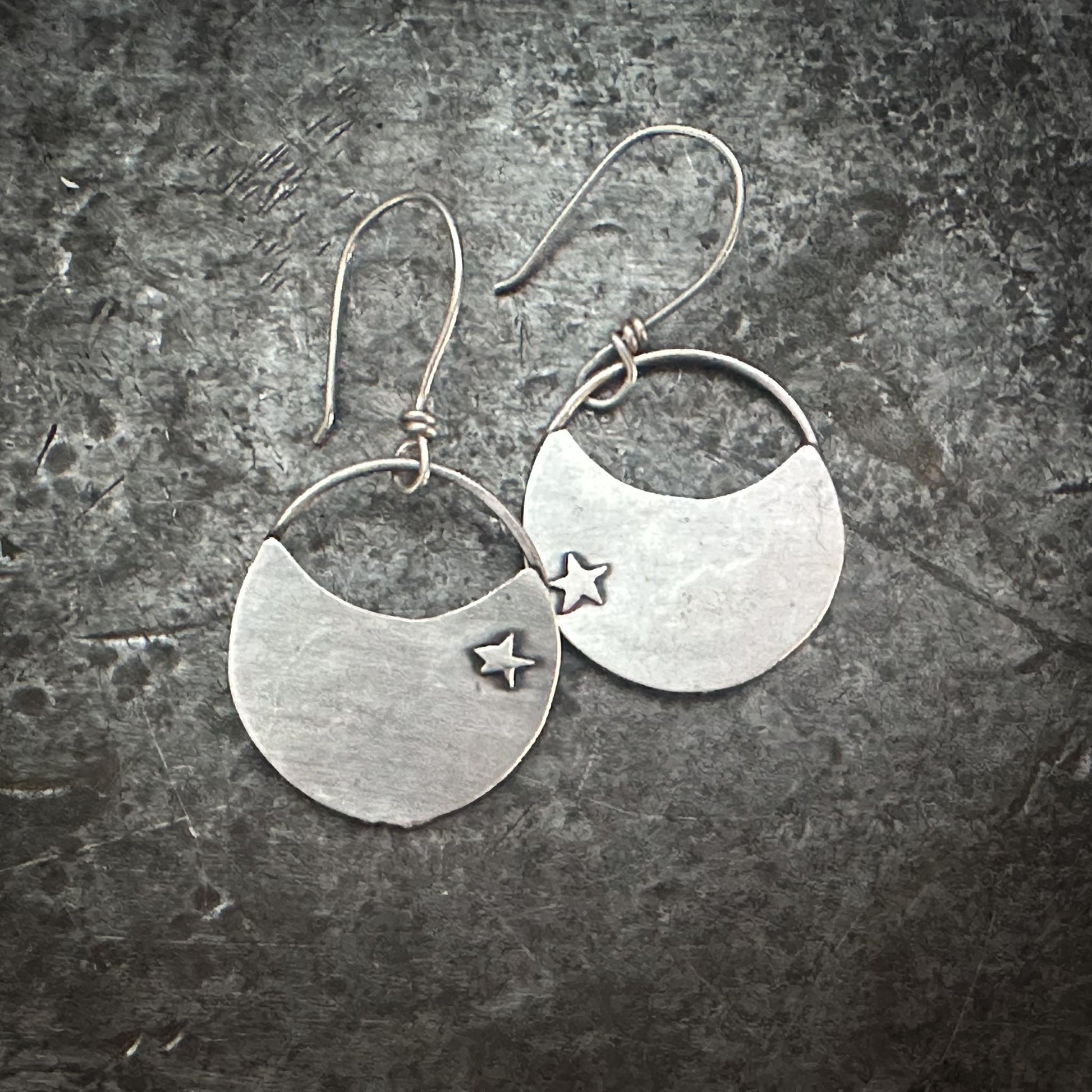North Star Crescent Disc Earrings | Sterling Silver + Hand-Pierced Stars | Ride the Wind Collection