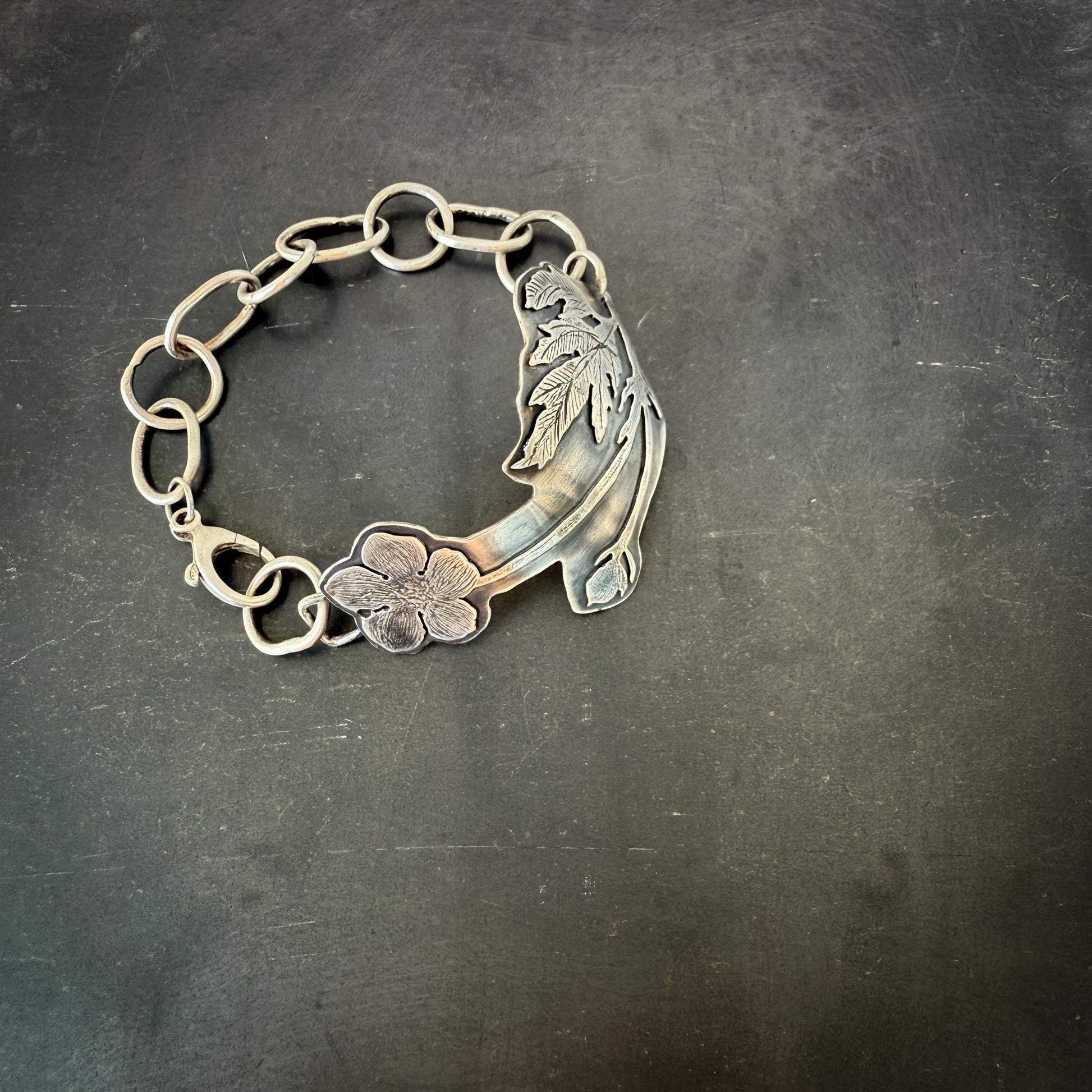 Ranunculus Botanical Silver Bracelet | Flora Arma Chunky Handmade Sterling Silver Jewelry
