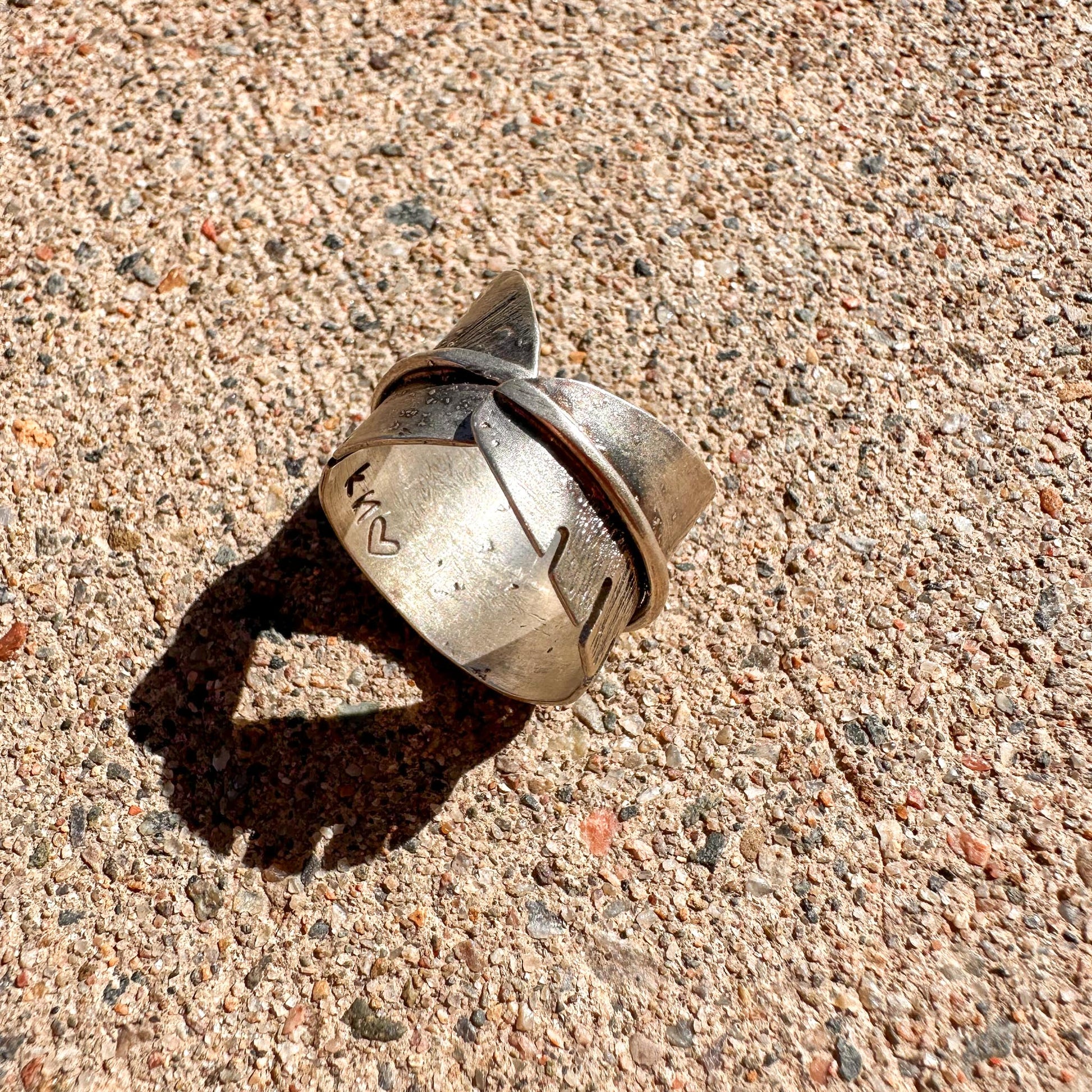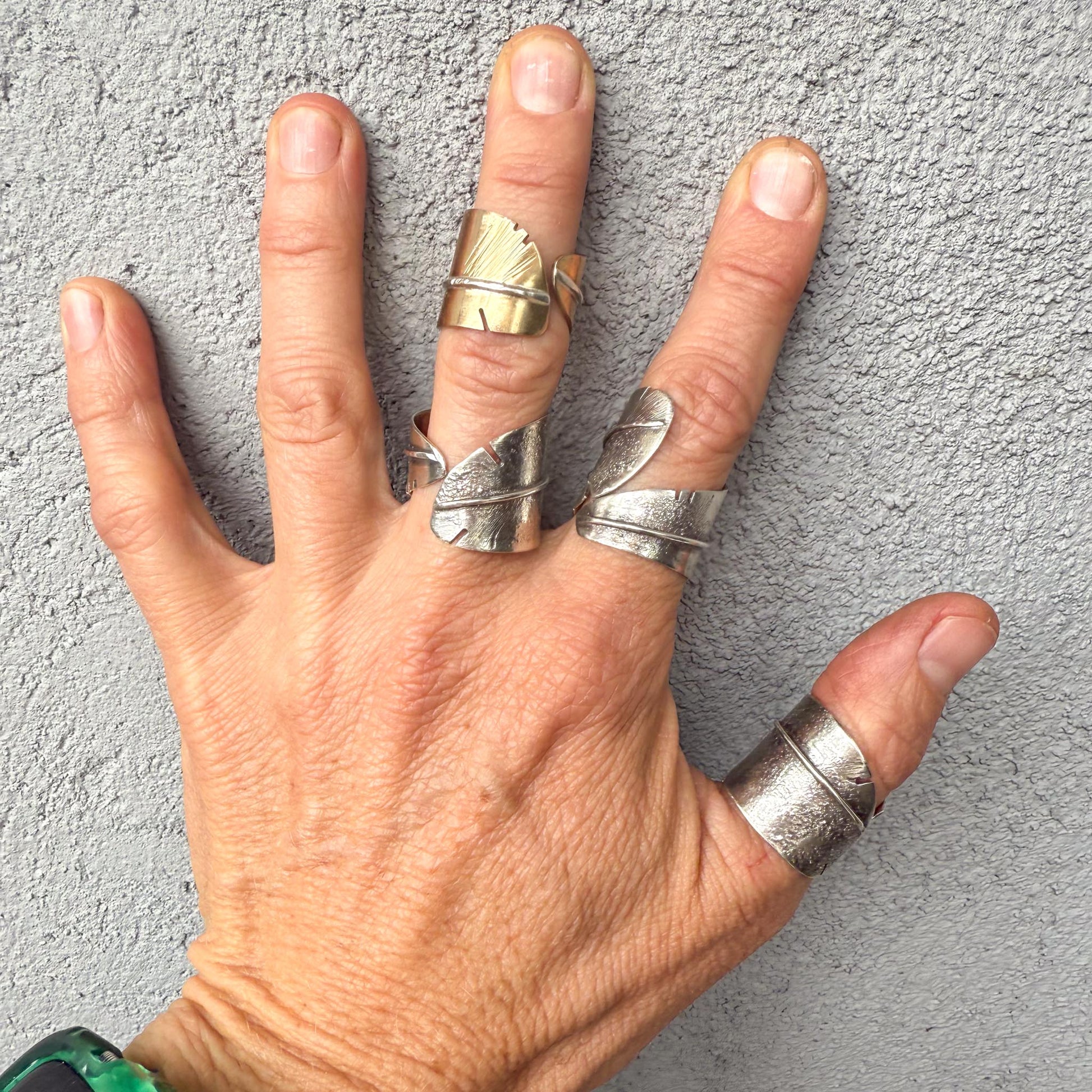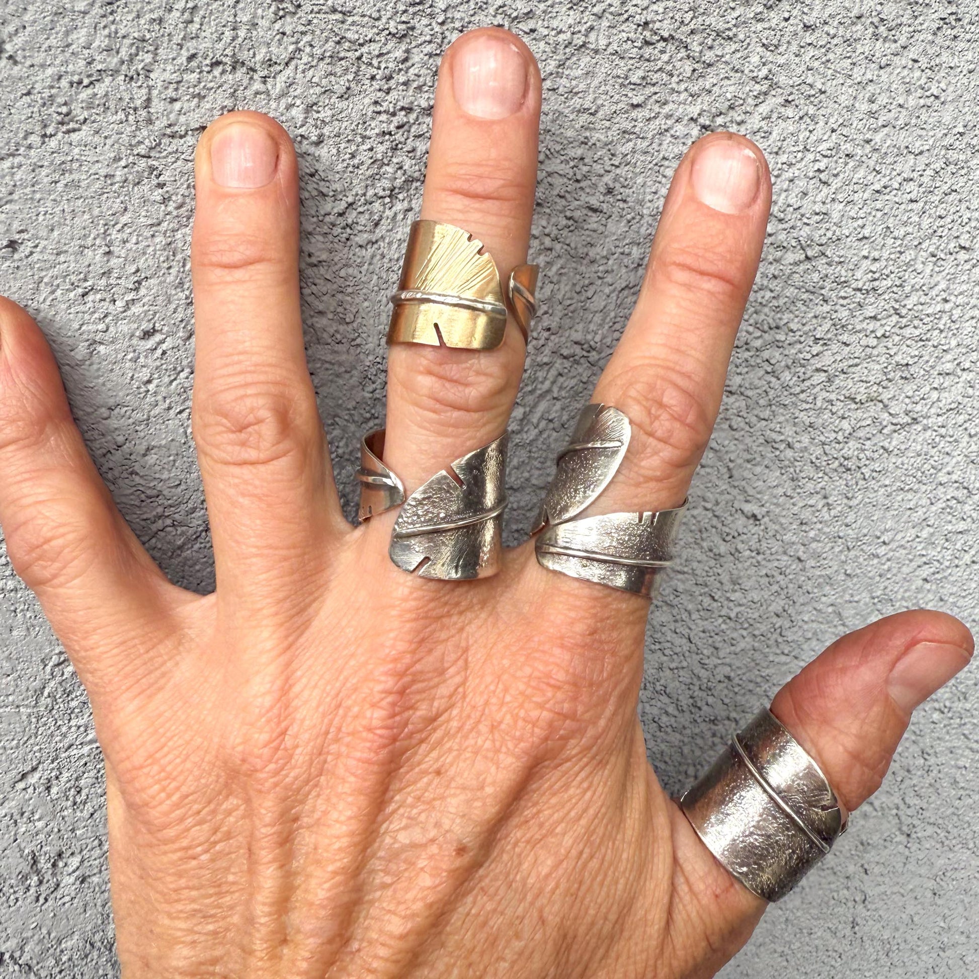Take flight with the made-to-order sterling silver adjustable feather ring.