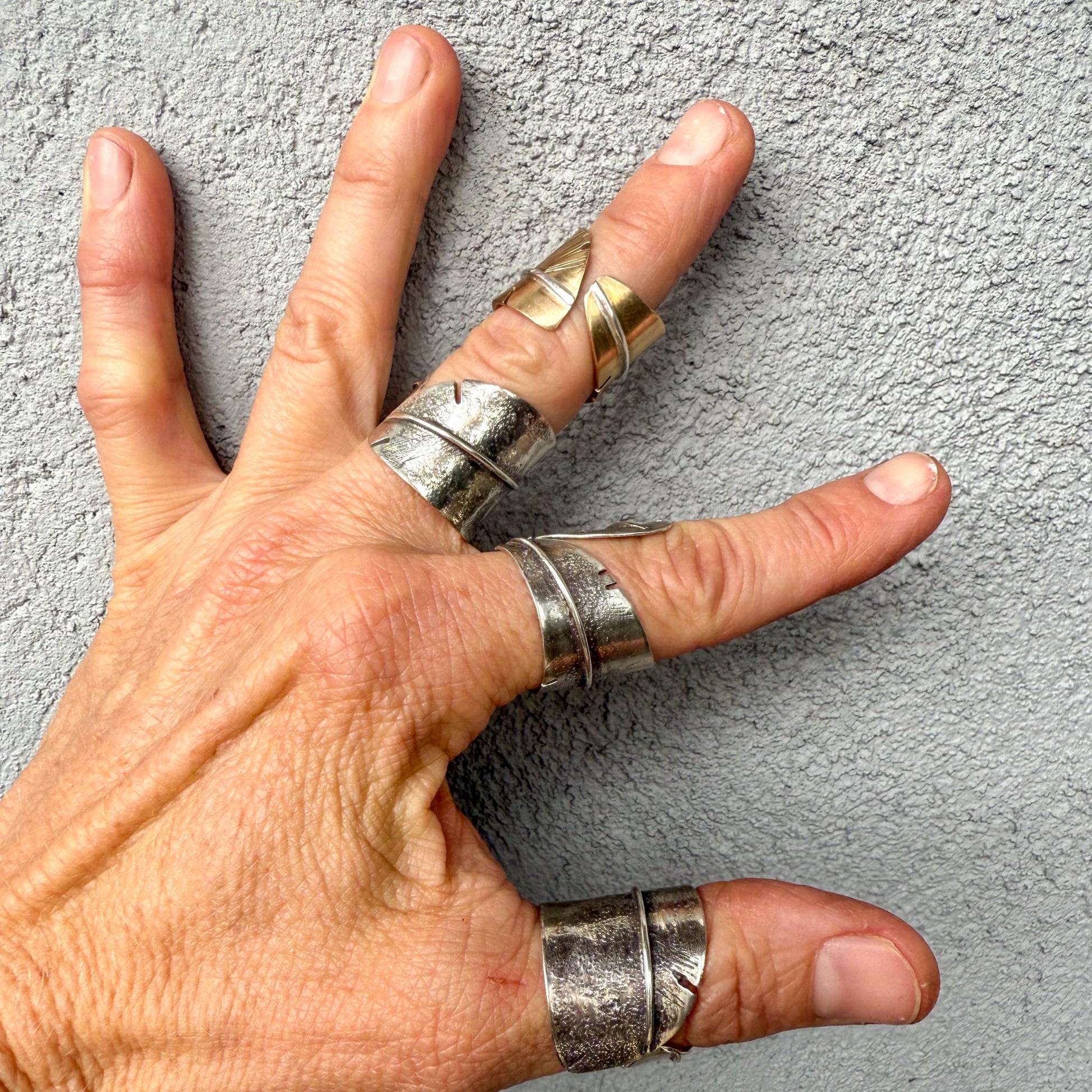 The Fearless Flight rings are hand fabricated from sterling silver and textured with shimmering silver dust. Each ring is made-to-order, ensuring a perfect fit.